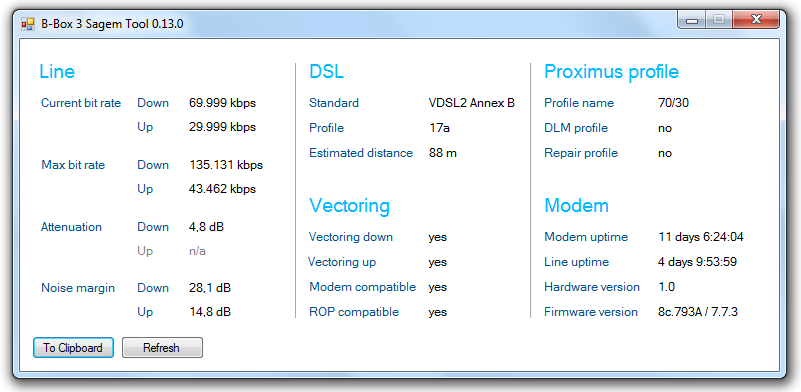 10.10.2025 De lijn gaat plots terug naar 70/10 maar na een modem reboot gaat hij terug naar 70/30