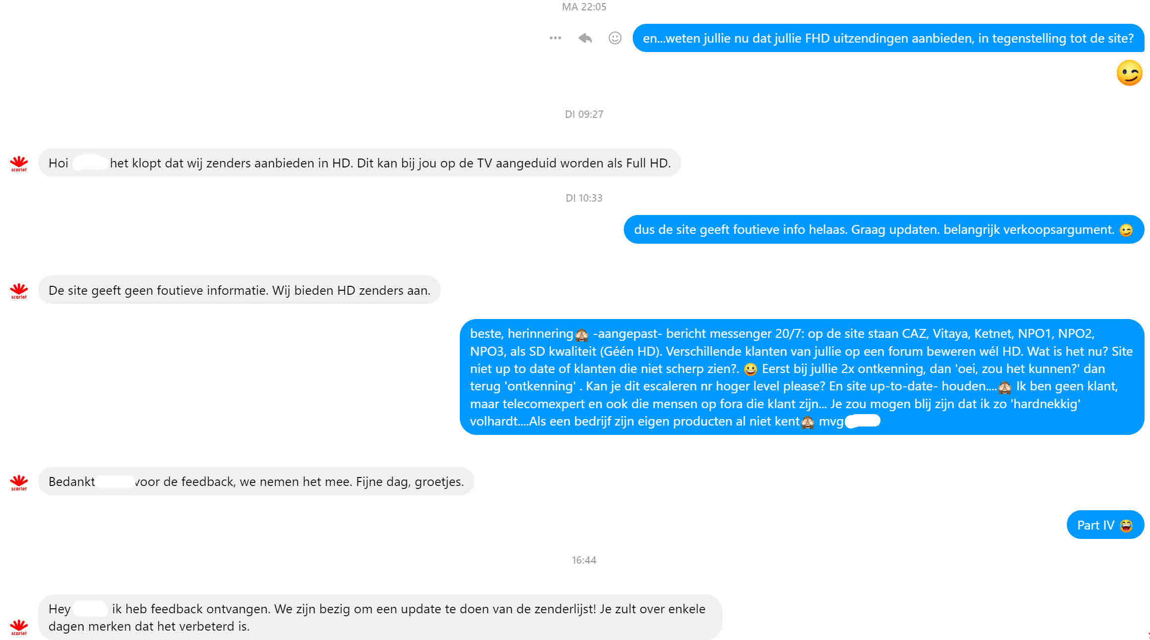 Zowel de site als Scarlet (via FB vraag) zeggen dat de info klopt op de site. 2 mensen op ander forum beweren bij hoog en laag dat het wel HD is.
