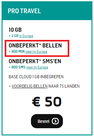 Die 800 minuten tellen dus niet meer voor het ontvangen van oproepen, of bellen naar het thuisland, enkel dus voor het maken van oproepen naar het buitenland: