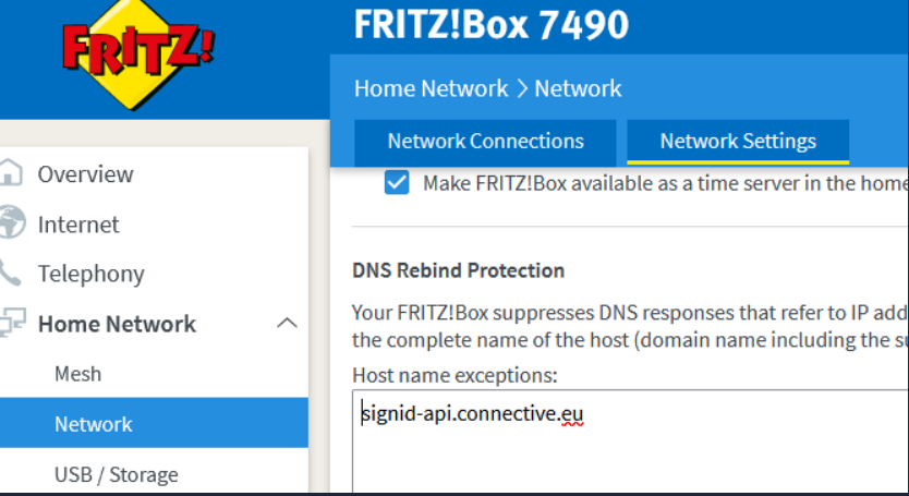 Signis-api.connective.eu whitelisten in de DNS rebinding opties van de fritzbox.