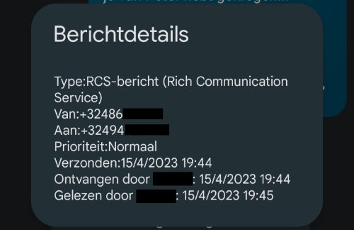 Ik heb voor het eerst RCS gebruikt bij Mobile Vikings op 2 december 2021 dus dat is toch al een tijdje actief. Ik maak gebruik van de Google Berichten app, als ik communiceer met iemand die ook RCS aan heeft staan wordt het automatisch gebruikt, tenzij anders gekozen in het menu 'informatie' van de contactpersoon.