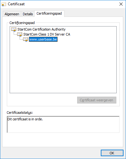 Als ik op 'Certificaat tonen' klik, dan lijkt er niet direct iets mis te zijn: