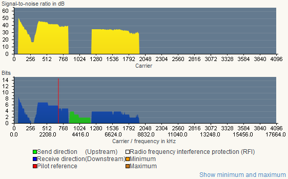 Je bent trouwens niet op het povere fallback-profiel terechtkomen aangezien jouw modem minstens vector-friendly is. Het zou dus kunnen dat de "G.vector on"-aanduiding in de fritzbox geen onderscheid maakt tussen vector-friendly en vector-capable.