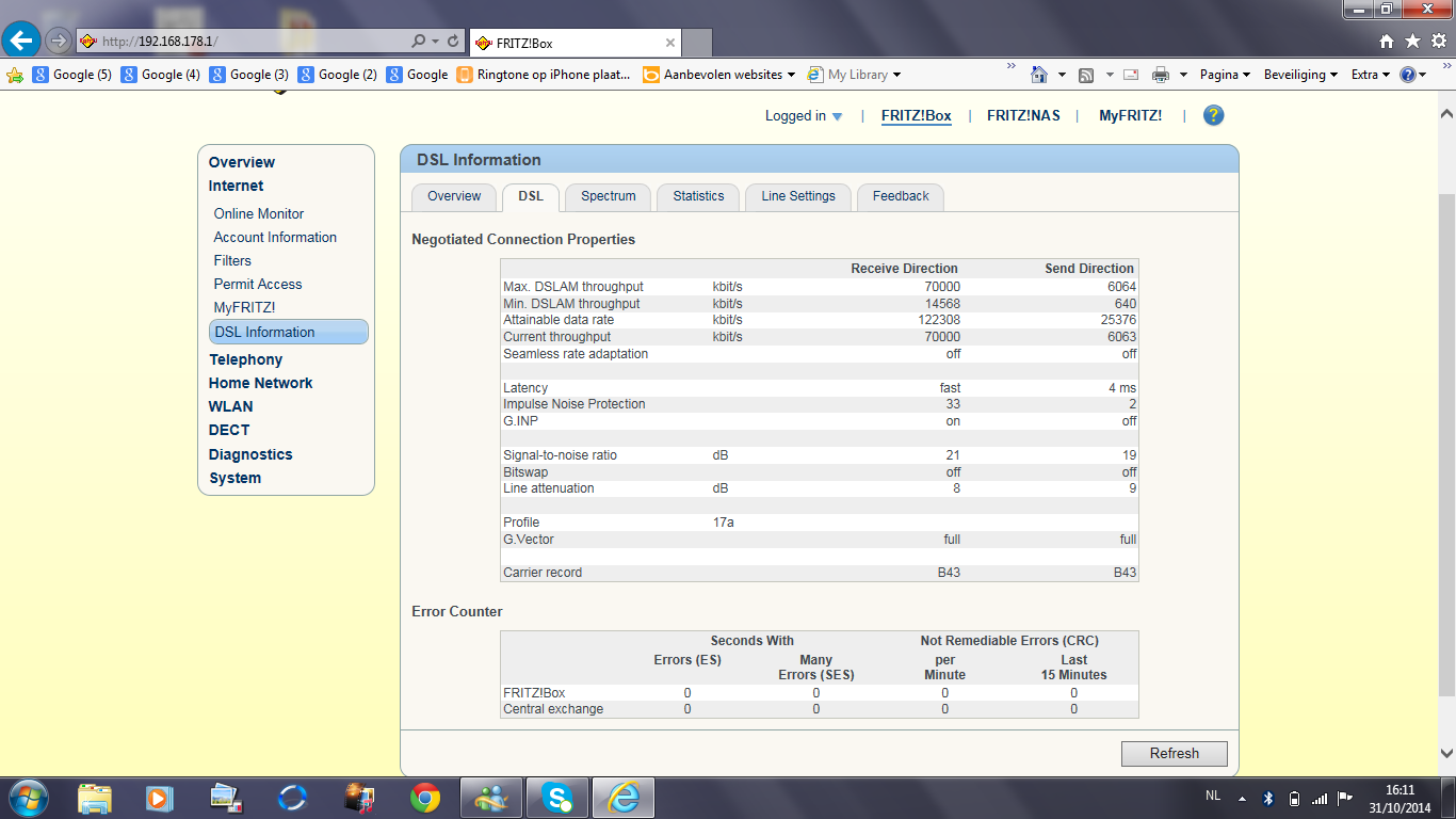 Op 25 augustus voerde Belgacom werken uit aan de ROP om deze klaar te maken voor vectoring. Dit kon ik ook zien in de Fritz!Box omdat mijn lijn gemigreerd werd van Ikanos naar Broadcom. So far so good. Ik haal al jaren 30/2 en dit bleef na de migratie ook zo.