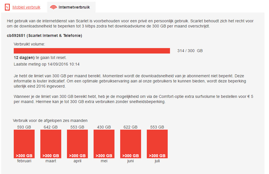 Als 300 GB bereikt is wordt met ingang van15/09/2016 de downloadsnelheid beperkt tot 3 Mbps.