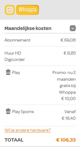 telenet whoppa + play en play sports €106,33: EDPnet newer and faster + telefonie = €35,95 + €10 = €45,95