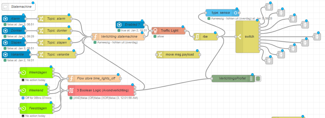 cyberbozzo schreef: Algemeen vind ik de opzet van HA zeer ingewikkeld. Bijvoorbeeld: 1u na zonsondergang gaan mijn tuinlampen aan. Maar wanneer ik dan wegga, gaan alle lampen bij me thuis uit (zo ingesteld op basis van mijn presence van mijn iphone). Kom ik dan later die avond thuis, zijn uiteraard de lampen in de tuin uit. Dus ik zou al een thuiskom schema moeten gaan maken met verschillende uren (dus verschillende thuiskom scenes!) indien later dan 18u, dan lampen in huis aan en ook de tuin aan, maar vroeger dan 18u, enkel thuislampen aan en geen tuin.