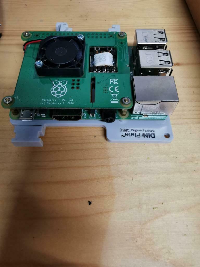 Is er interesse voor een Rasberry Pi 3B+ gemonteerd op een DIN-rail bordje (DinrPlate), met stroomvoorziening via een PoE bordje erop gemonteerd.