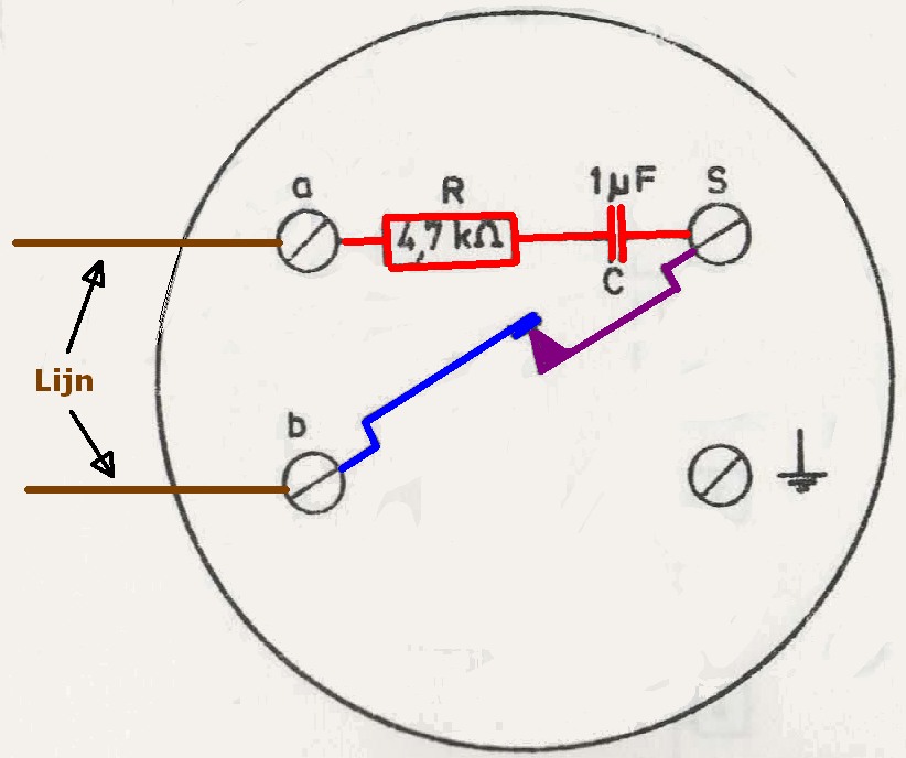 Indien een toestel ingeplugd in de telefoonprise, werd de RC keten in het telefoonsprise verbroken tussen a en b maar meet je