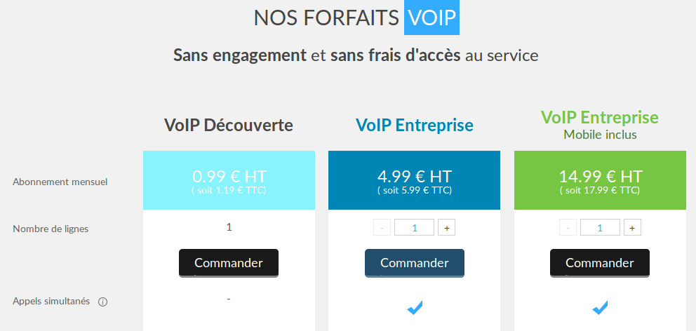 peu de clients la commande. #2 avec l'offre à 0.99E/mo les