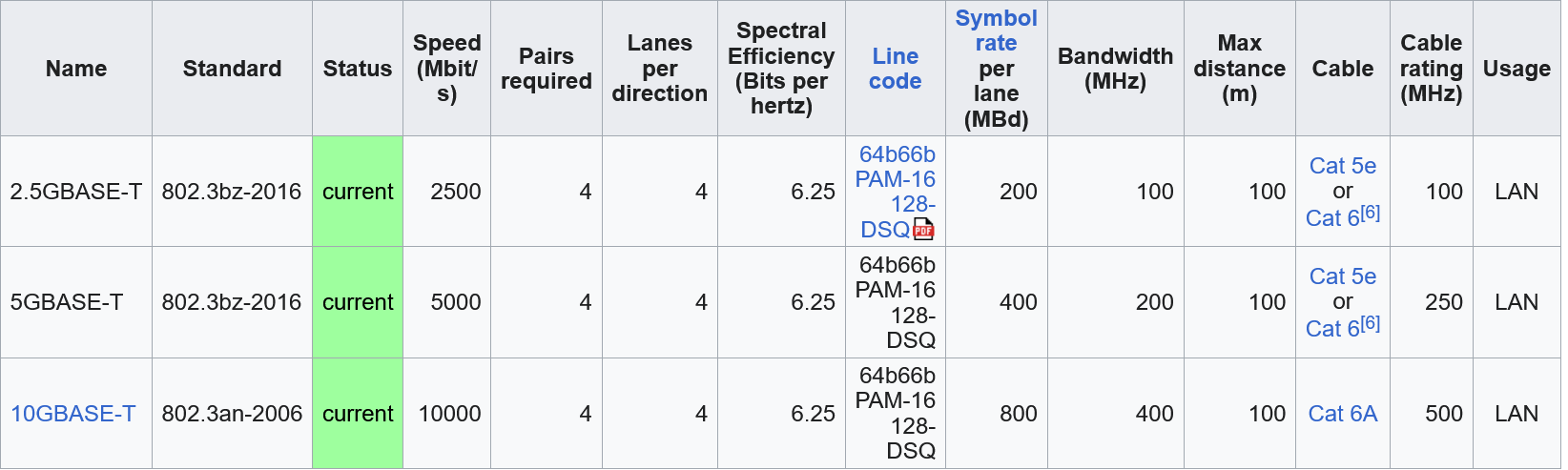 @master-magic Het zal niet aan de kabel liggen. Met een kwalitatieve Cat5e kabel rated tot op een bandbreedte van 200 MHz zou je perfect tot 5 Gb/s kunnen halen over een afstand van max 100m en met jouw Cat6a kabel tot 10 Gb/s over 100m.