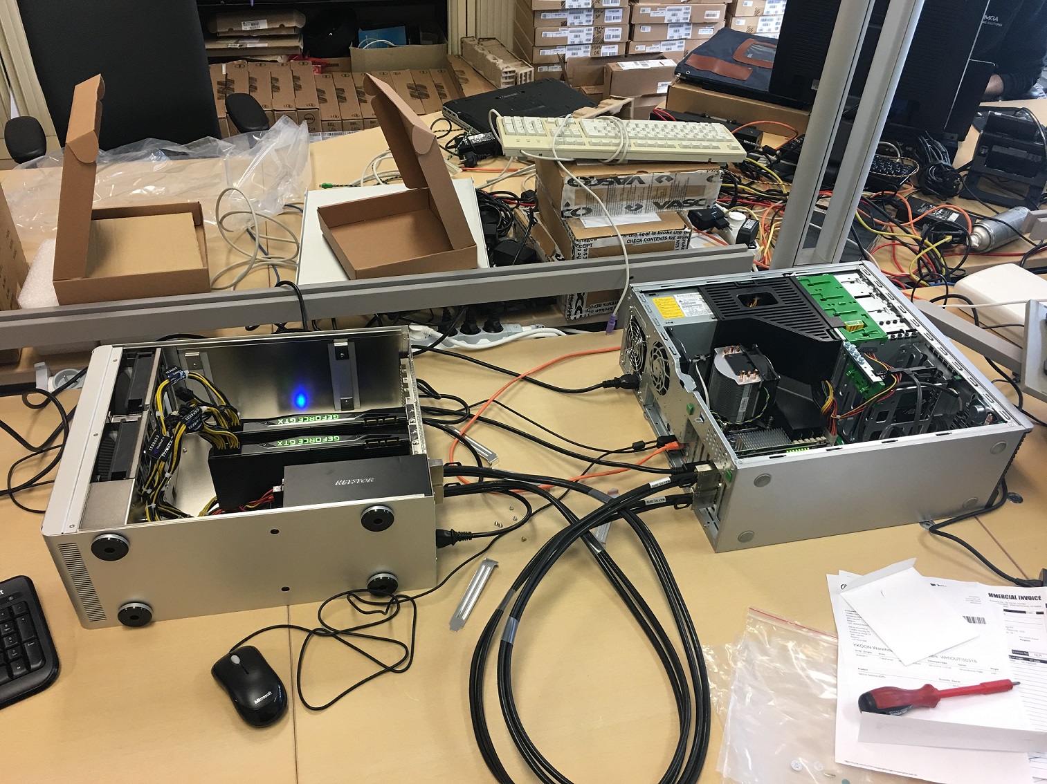 Haha, oei, ik zie net dat ik daar niet op verder gegaan ben ... Die 2 Titan X kaarten zijn voor ons op het werk, we gebruiken ze via CUDA om berekeningen te maken. Ze zitten in een Nestor NA255A kast die met 2 dikste kabels ooit verbonden is met een PCIe kaart die de PCIe sloten in de Nestor case "verbindt". Alleen krijgen we het niet aan de praat op de industriële PC waar het op zou moeten werken. Op een oud HD Xeon workstation werkt het wel zonder problemen. Maandag nog eens verder aan verderzoeken.