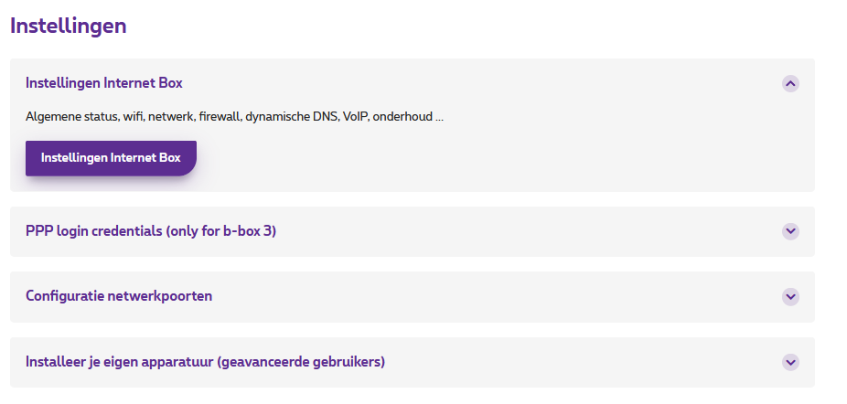 - Op My Proximus > Internet > Instellingen is er een optie bijgekomen: Installeer je eigen apparatuur (gevanceerde gebruikers)