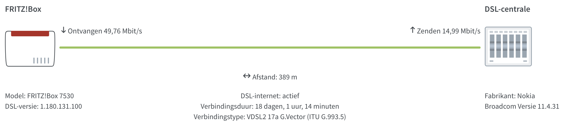 Volgens dat ze mij zeiden was er een omschakeling in de wijkkast. Bij EDPNET had ik 100/40 van lijnwaarden. Volgens de waarden van de Fritzbox zou ik die nu ook moeten behalen maar DLM komt niet tussen. Vandaag heb ik de internetbox terug geplaatst en nu is het terug afwachten.