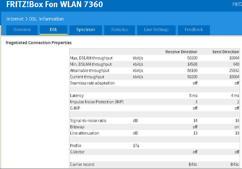 Deze gebruikers zou ik dus wel aanraden om hun FritzBox eens op "Annex A" te proberen. Een kleine verbetering van de upload capaciteit is misschien genoeg om uit de "grijze zone" te geraken!- last but not least: nu begrijp ik eindelijk waarom B-box3 gebruikers een betere vectoring upload waarde zien dan FritzBoxen. Het zou mij niet verwonderen, dat de B-box3 gewoon op Annex A synct, en dus maximaal de beschikbare frequenties gebruikt.