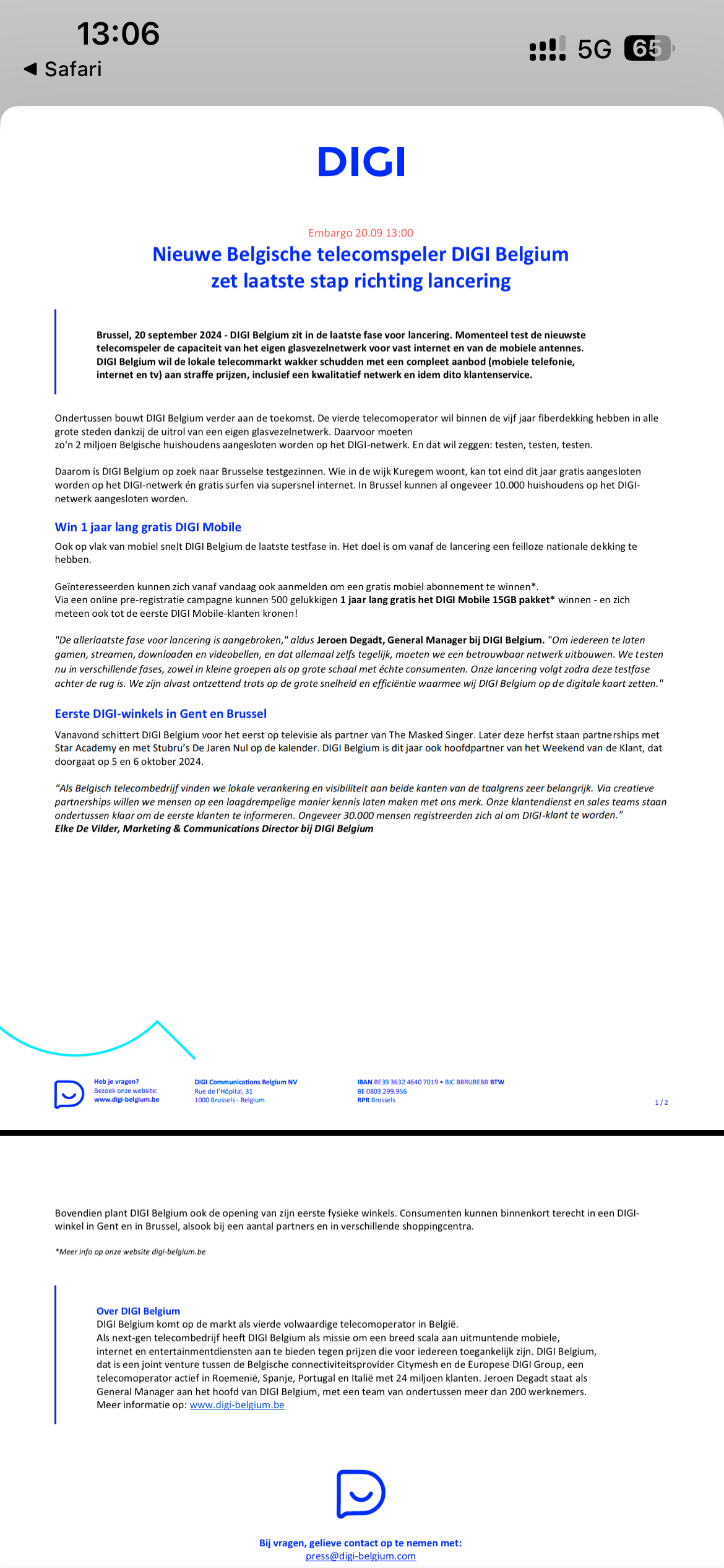Reclame maken maar niets aanbieden.Eerste DIGI-winkels in Gent en BrusselVanavond schittert DIGI Belgium voor het eerst op televisie als partner van The Masked Singer. Later deze herfst staan partnerships met Star Academy en met Stubru’s De Jaren Nul op de kalender. DIGI Belgium is dit jaar ook hoofdpartner van het Weekend van de Klant, dat doorgaat op 5 en 6 oktober 2024.“Als Belgisch telecombedrijf vinden we lokale verankering en visibiliteit aan beide kanten van de taalgrens zeer belangrijk. Via creatieve partnerships willen we mensen op een laagdrempelige