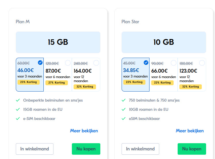M: 25GB dat je ook volledig in EU kan gebruiken.
