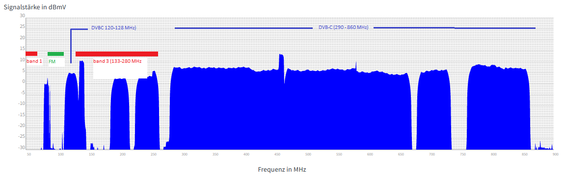 - Telenet spectrum gemeten rechstreeks op binnenkomende coaxkabel: