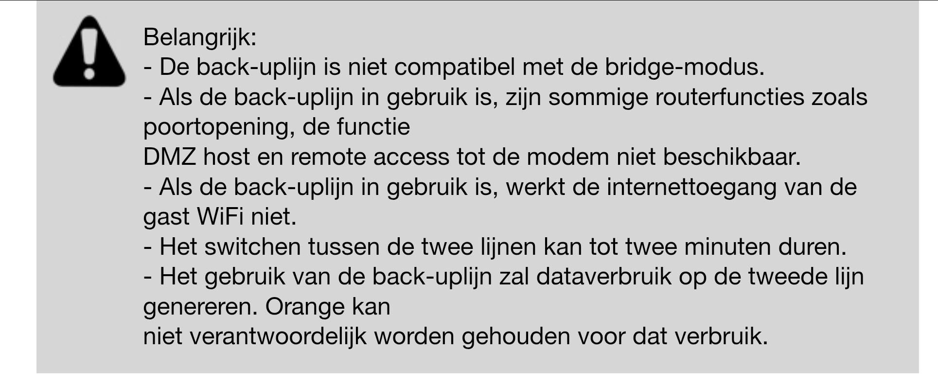 Dus bridge modus werkt niet bij Orange Lifebox ?