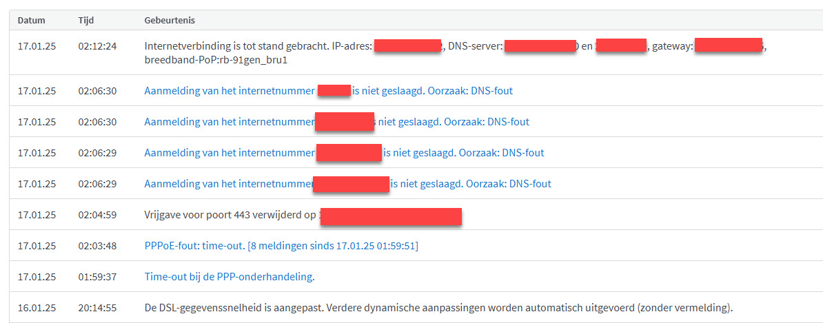 Hier update gedaan en na enkele uren connectie weg. Zie wel nog sync snelheid maar geen internet PPPOE verlopen error