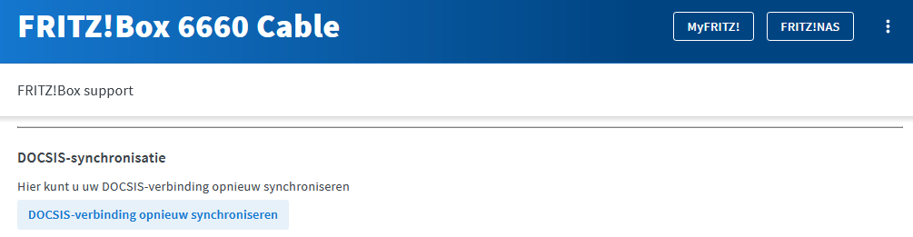 In de FritzBox kan je dat ook manueel doen: Hulp en Info > Fritz!Box Support > DOCSIS-synchronisatie