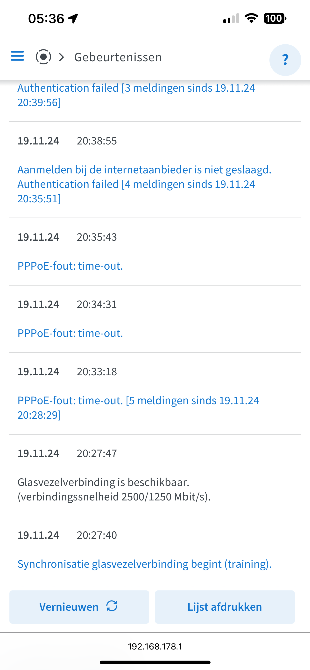 Kijk eens in de logfile (Systeem > Gebeurtenissen > Internetverbinding
