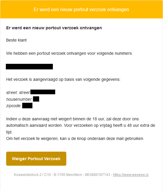 - 19/11: Weepee bevestigt dat het portout-process afgerond werd.
