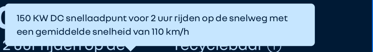 Als je 2u rijdt ben je max 50 kWh kwijt uit je batterij. Als je dus snellaad aan 150 DC moet je maar 20 min laden om dan 2u later terug hetzelfde te doen.