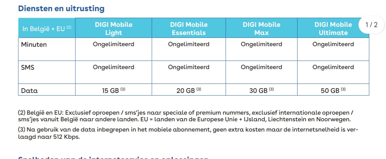 Je blijft op €5 zitten als ik het zo lees. Alleen na de 15GB surf je aan verlaagde snelheid. (of data bijkopen)boulder schreef: 11 dec 2024, 18:28 Ik vermoed dat ik met 15 Gb/maand ik bijna altijd zal voldoende hebben, waardoor ik bijna iedere maand zal besparen, die paar keer dat ik er wel over zal zitten, zal ik waarschijnlijk nog altijd onder de €14/maand zitten.