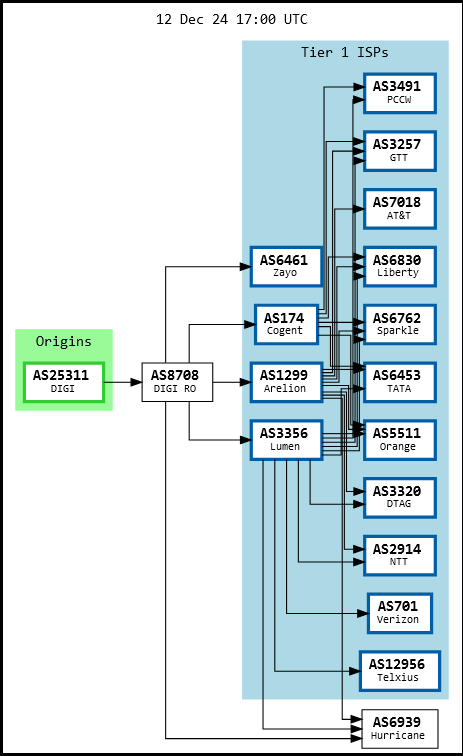 Digi-Belgium hun provider is Digi Romania S.A. en zij hebben gewoon providers als Cogent, Arelion en Lumen en vele peers via welke zij de rest van het internet kunnen bereiken.