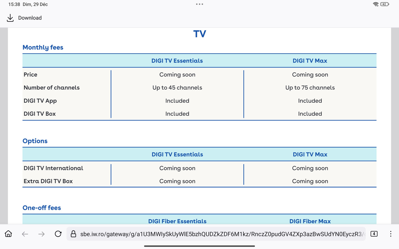 Voor zover ik kan lezen, moet je wel minstens 1 ander digi-product nemen(vast of mobiel) nemen, is dus ook jammergenoeg niet geschikt als stand-alone aanbod.VossyGamer schreef: 29 dec 2024, 16:18 Gelukkig zal je DIGI TV kunnen nemen zonder internet, want dat zal hier nog lang niet beschikbaar zijn uiteraard. Wanneer gaan ze releasen??