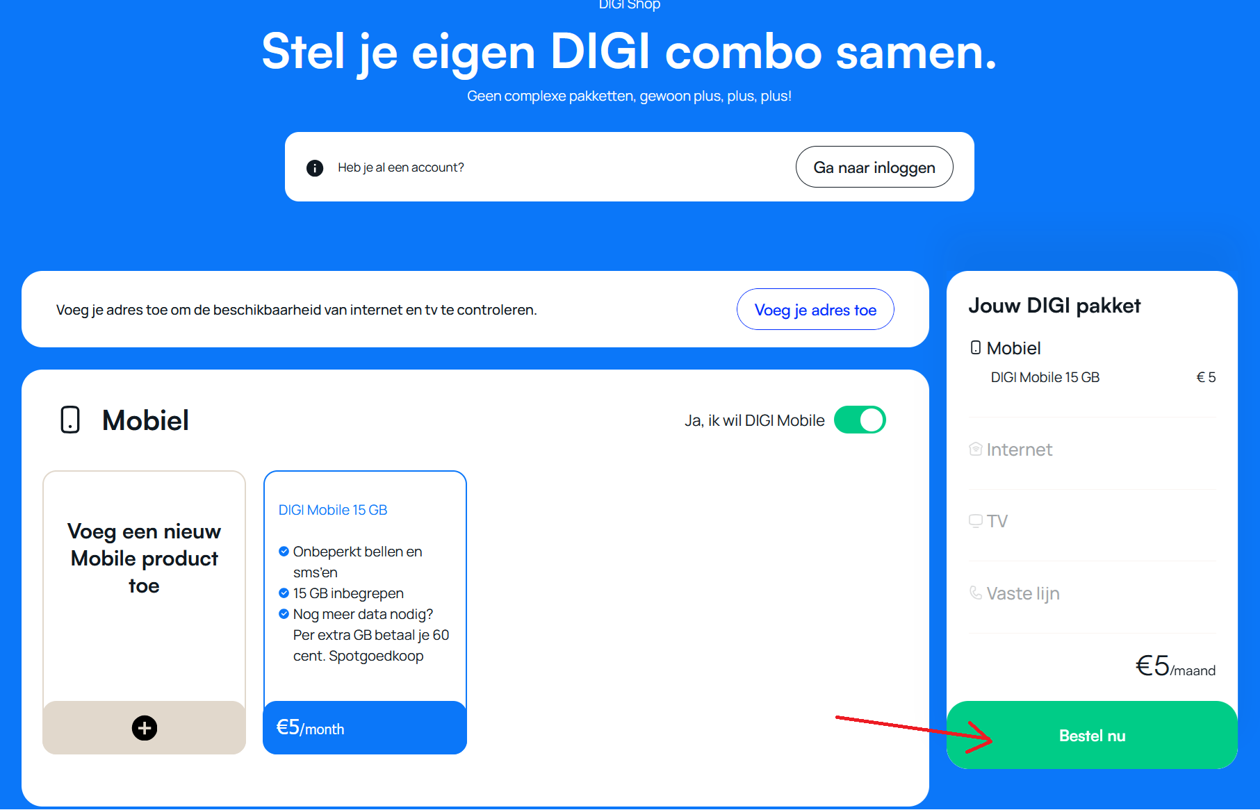 1. op https://www.digi-belgium.be/nl kies voor mobiel en kies dan je abonnement