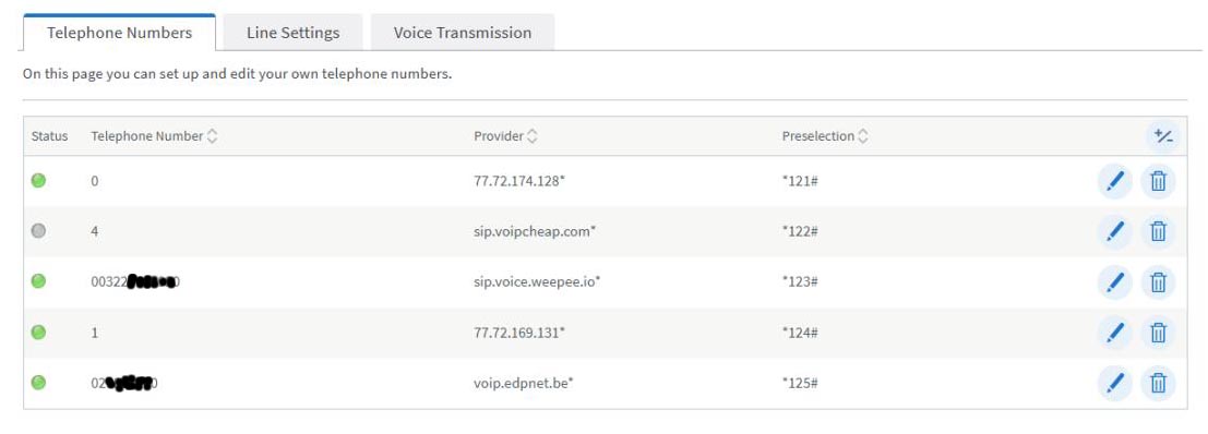 Als je op één van je Voip lijnen de "Edit" knop gebruikt (potloodje) dan kom je in het menu van mijn screenshot.