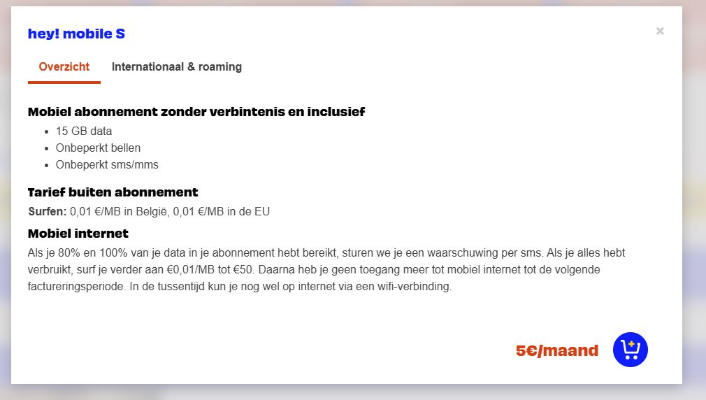 GSM (15gb): Hey S: 5€/maand