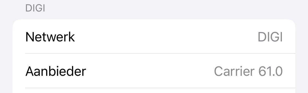 Welk informatie is dat juist, waar kan ik dat vinden? Onder General > About zie ik bij Network "DIGI" en Network Provider "Carrier 61.0", maar ik weet niet of het dat is wat je bedoelt.