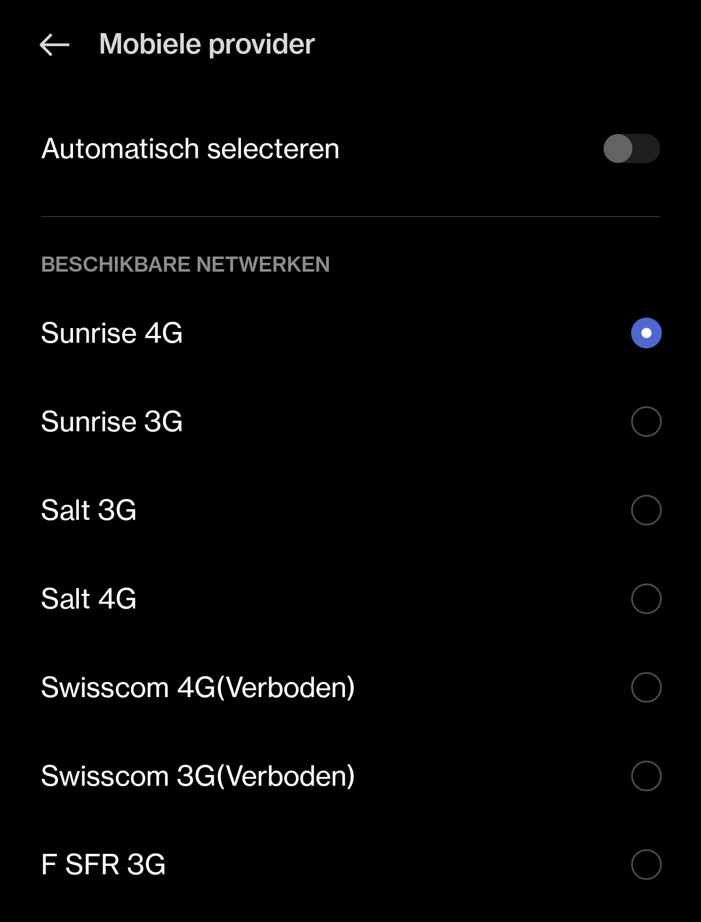 Enkel de Sunrise 4G werkt volledig, Salt enkel bellen/sms, Swisscom kan ik niet selecteren.