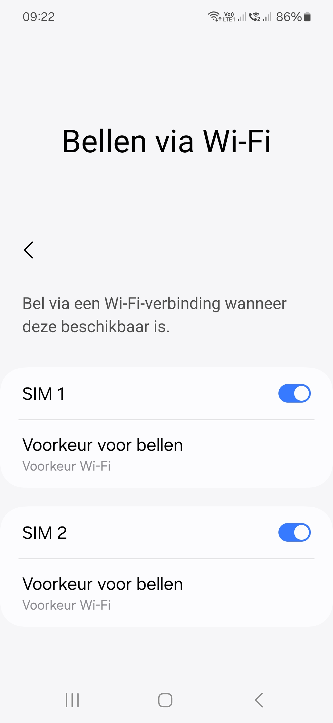 Beide simkaarten zijn van MV? Met mijn Base simkaart zijn deze opties er ook, maar met een Digi simkaart verdwijnen deze opties gewoon uit de instellingen.jaker schreef: 13 jan 2025, 09:28 Ik heb ook een S23 en beide opties zijn wel degelijk aanwezig en staan trouwens alle 2 actief bij mij (MV)