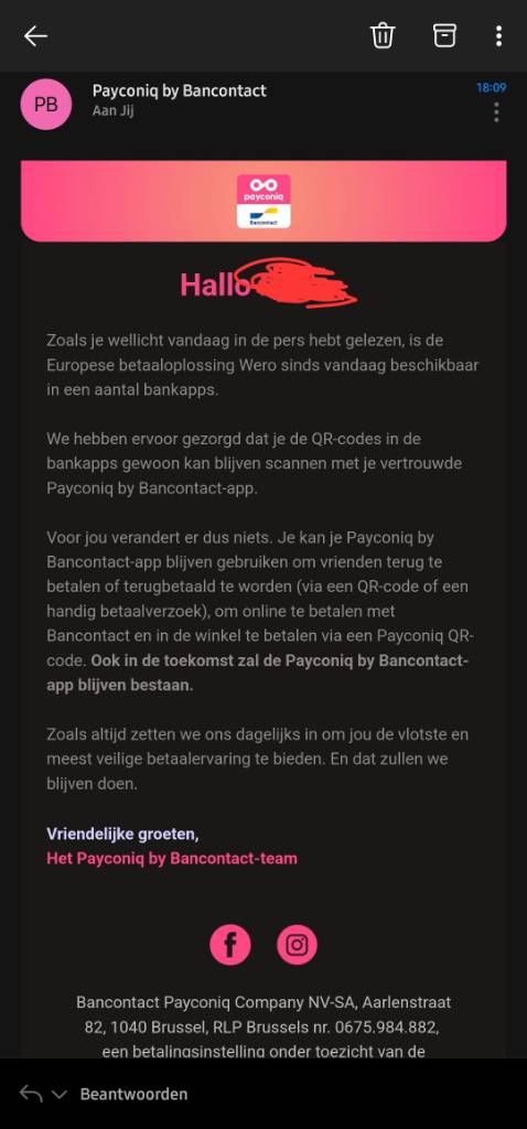 Heeft ooit bestaan (nfc betalingen) in de stand-alone 'bancontact' app. Deze functionaliteit werd echter verwijderd wegens 'impopulair'....lucdec schreef: 19 nov 2024, 19:37 anno 2024 loop ik nog altijd met 3 fysieke kaarten (Argenta, Keytrade en Sodexo) in m'n (nfc gsm) wallet rond... er is nog veel werk aan de winkel. Gelukkig stopt payconiq ermee. Je kan er nog niet eens via nfc mee betalen....