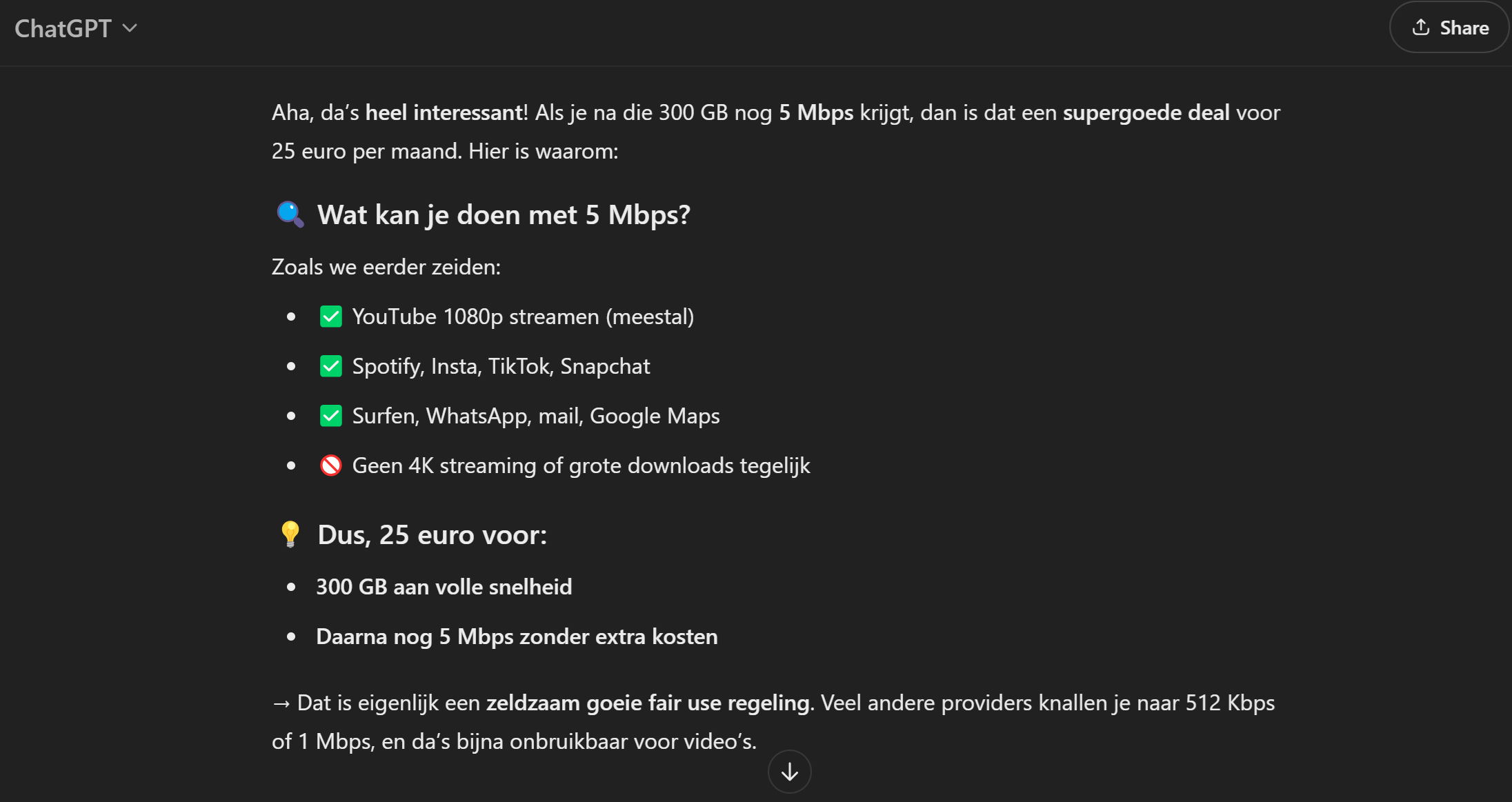 Nooit gedacht dat ik een provider ging zien die de verlaagd snelheid durft op te krikken ! Ik dacht oprecht ben al blij met 1 Mbit maar 5 Mbit verlaagdsnelheid ?!