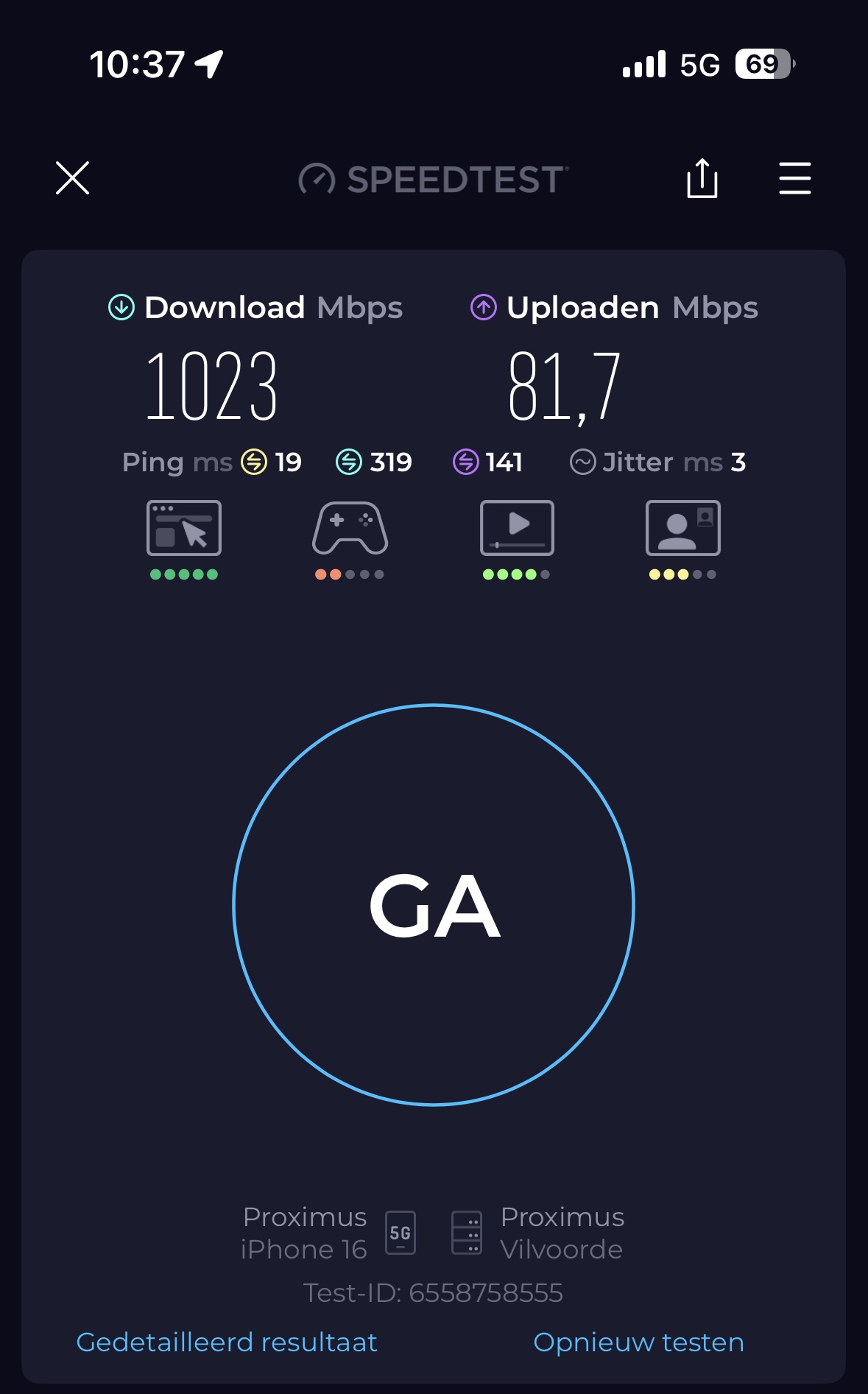 Vandaag in Aarschot centrum 5G snelheden gemeten van 1023 mb down. :eek: