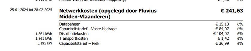 Die werd - voor zover ik zie - niet aangerekend. Ik zie enkel capaciteitstarief 5,1kw => vermits dat niet 2,5kw is - wat het geval is bij terugdraaiteller - gaat het hier om correcte aanrekening bij digitale meter. Hezt bedrag is evenwel veel te laag voor 5,1kw gegeven de periode waarover het zou gaan? Eens capacitietstarief >2,5kw op je factuur staat is een eventueel prosumententarief niet meer van toepassing. Something is not right there