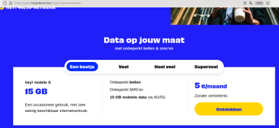 Het is al wat minder 'verstopt'. Al noemen ze 15GB zeer weinig en is niet alles op de website vertaald uit het frans .. is toch gewoon een vorm van 'upselling' . Test-aankoop kan HEY niet verplichten een bepaald tarief aan te bieden.