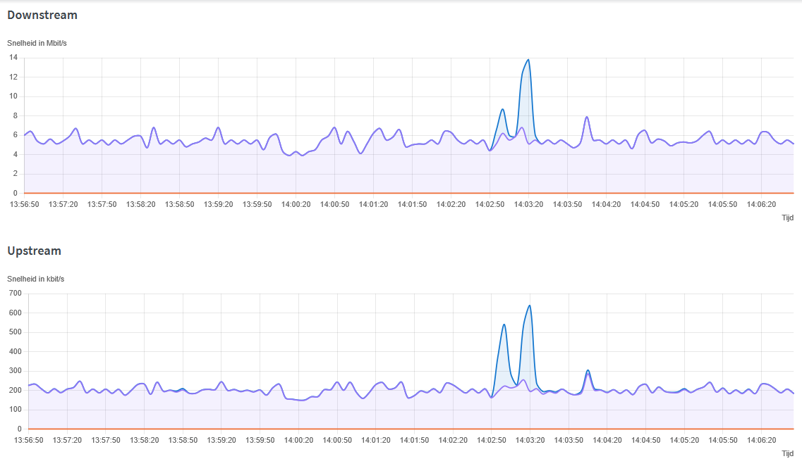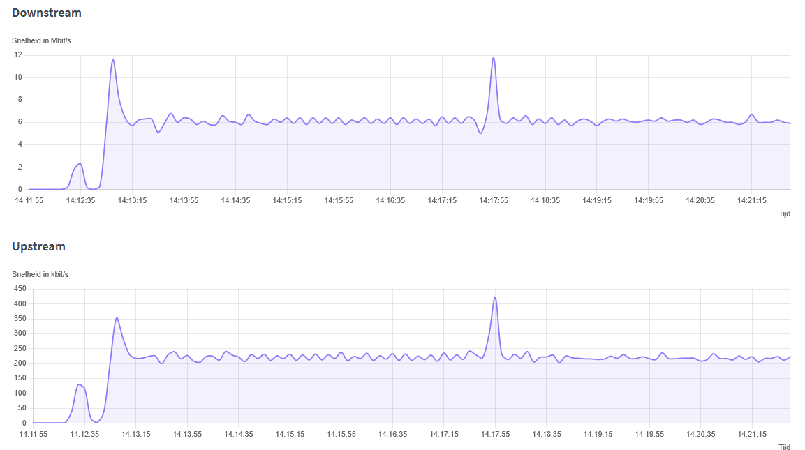 Ik keek gisteren van 22:00 tot 23:55 uur TV via VRT Max streaming op de TV.philippe_d schreef: 5 maanden geleden streaming via VRT Max: schommelt rond de 5.5 Mbps, maar je moet ook de upload meetellen (continu 200 kbps), neem dus ca 6 Mbps = 21.6 Gb per uur of 2.7 GB