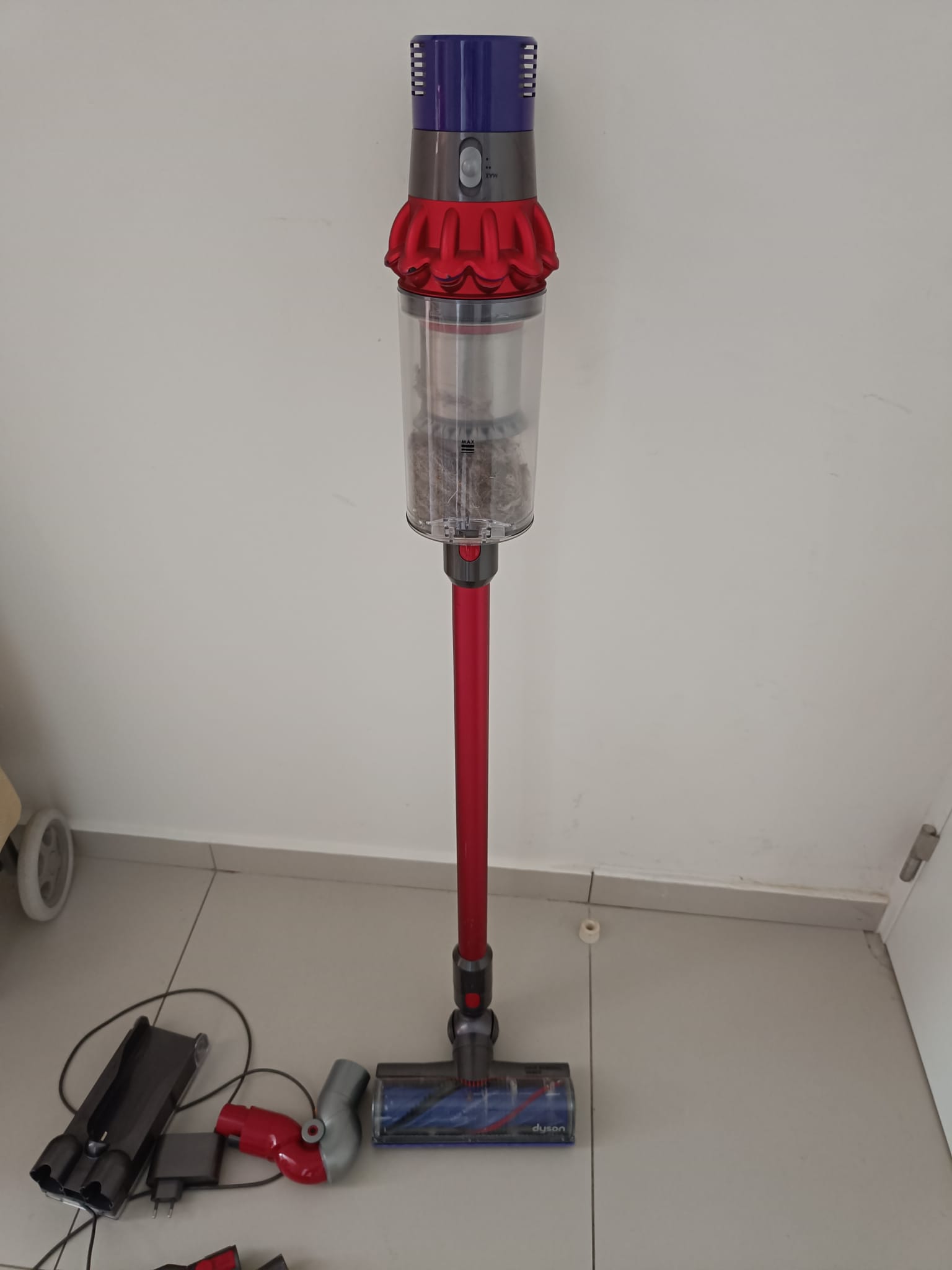 Object + omschrijving:Dyson v10 steelstofzuiger, samen met zijn accessoires. Hij is defect in die zin dat hij regelmatig uitvalt tijdens het stofzuigen. Soms kan dat na 5 minuten zijn, soms kan dat na 30 seconden zijn. Als je dan de aan/uitknop opnieuw induwt, dan gaat het weer even goed. Ik vermoed dus dat er een elektrisch probleem is. De batterij is niet gewoon verwisselbaar, in die zin dat je dus moet openvijzen. Misschien kan hij gerepareerd worden, misschien ook niet. Ik ben zelf geen handige Harry, dus wordt hij vervangen. Zelfs indien je hem niet zou repareren, in ieder geval handig voor wie een Dyson v10 heeft en graag een reserve borstel en andere accessoires wil! Die dingen kosten ook heel wat geld apart