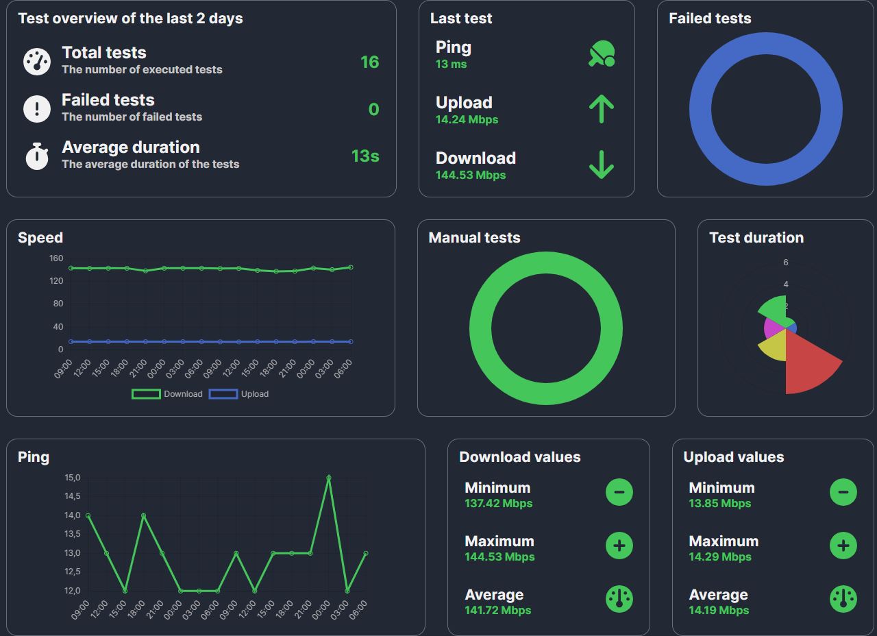Screenshot van speedtest die elke 3u loopt bij mij: