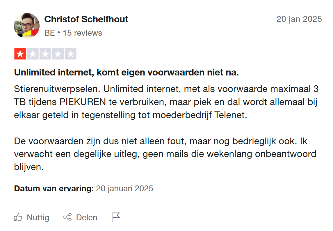 Ik heb hiervoor zelfs het BIPT gecontacteerd, met de vraag om na te kijken of de voorwaarden van BASE wel conform waren, maar daar kreeg ik (what did you expect) nul op het rekest. Het is te zeggen, ik kreeg de feedback dat BASE wel degelijk het totaalverbruik in beschouwing neemt, maar dat dit nog wel conform hun regelgeving is. Mij lijkt het eerder een simpele, heel ondoorzichtige en makkelijke misleiding.