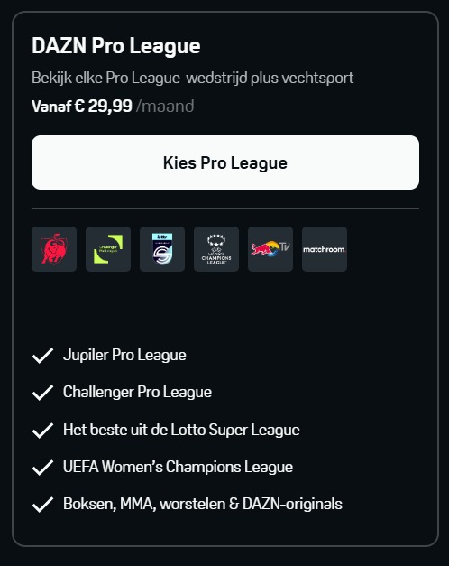 DAZN: "Wil je gewoon Belgisch voetbal kijken? Kan vanaf nu alleen bij ons, voor maar 29,99 €/maand op jaarcontract." (Per maand is het nog meer!)