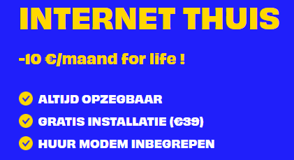 *Voor elke nieuwe klant geldt de prijs van 29 € per maand (in plaats van 39 €) for life. Dit is enkel beschikbaar van 22/09/2025 t/m 05/10/2025. De installatie is gratis.