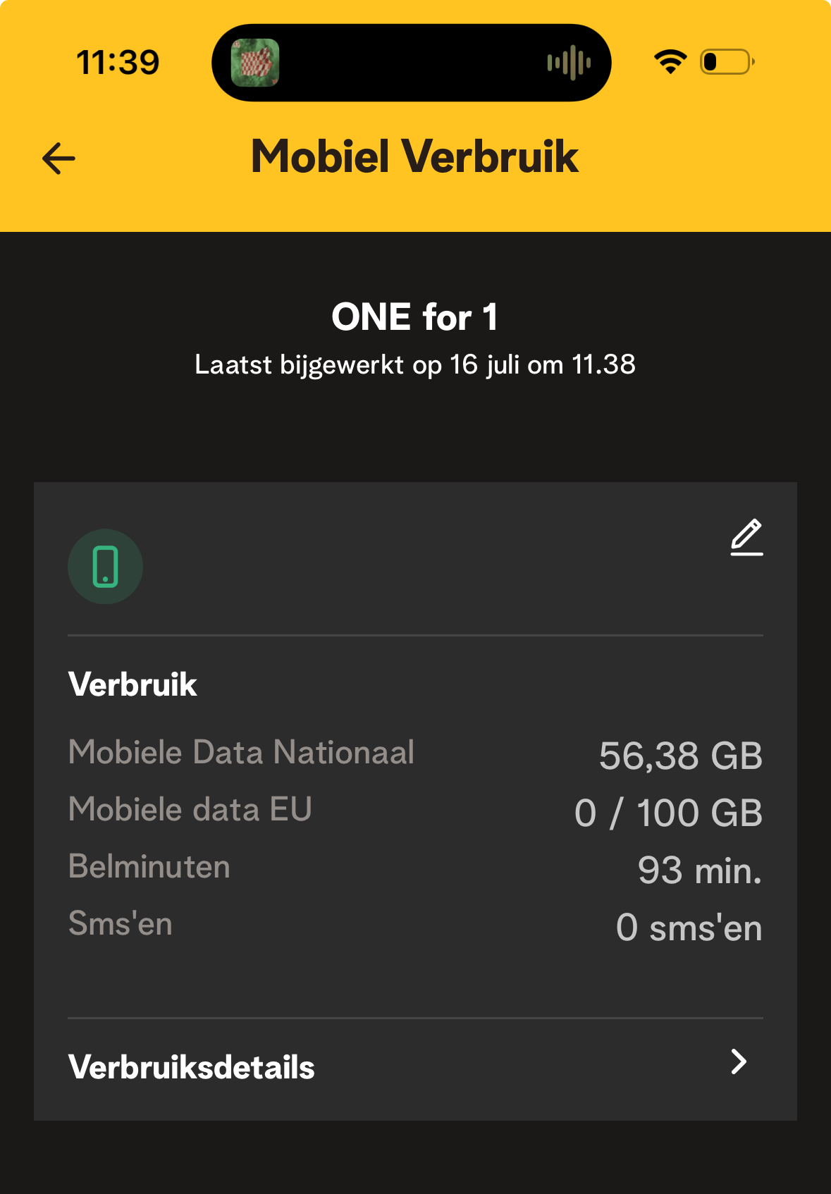 Op mobiel komen we amper aan de 5GB, we hebben elk een abonnement van 25GB.