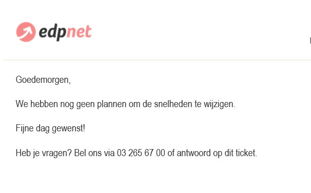 na een paar dagen het antwoord gekregen van edpnet op mijn vraag of er ter compensatie van de prijsverhoging een snelheidsverhoging voor VDSL XS komt ?
